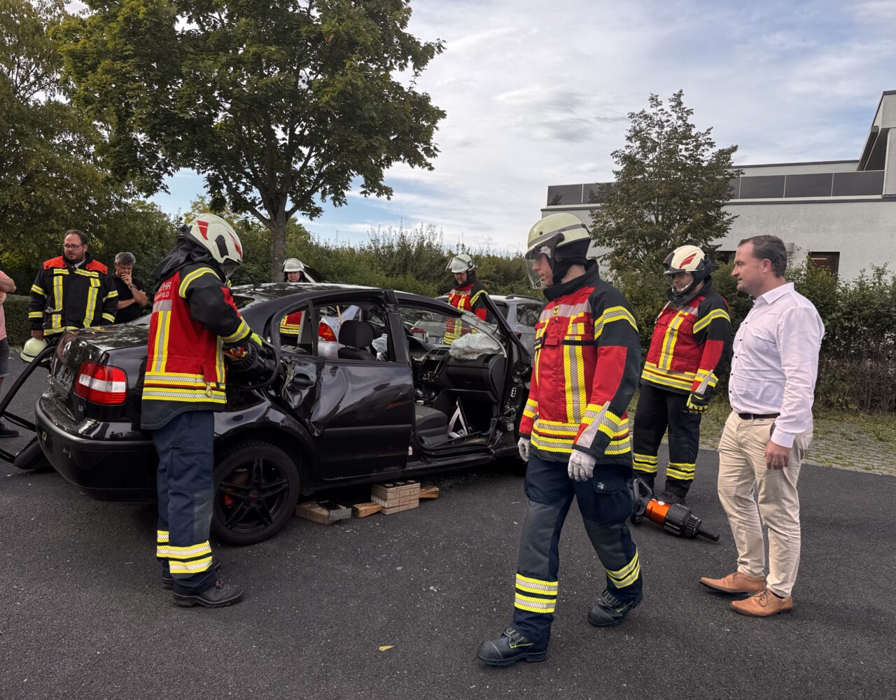 Um die Gemeinderäte bei der Entscheidungsfindung zu unterstützen, hat die Feuerwehr kurzerhand eine eindrucksvolle Vorführung am Feuerwehrhaus organisiert. Mit den neuen Geräten wurde ein Auto vor den Augen der Gemeinderäte fachgerecht zerlegt – schnell, leise und mit enormer Kraft. „Es war beeindruckend zu sehen, wie flexibel und leistungsfähig die neue Akkutechnik ist“, erklärt Bürgermeister Christian Keller. „Unsere Feuerwehr hat eindrucksvoll gezeigt, was moderne Rettungsgeräte und gut ausgebildete Feuerwehrleute leisten können.“