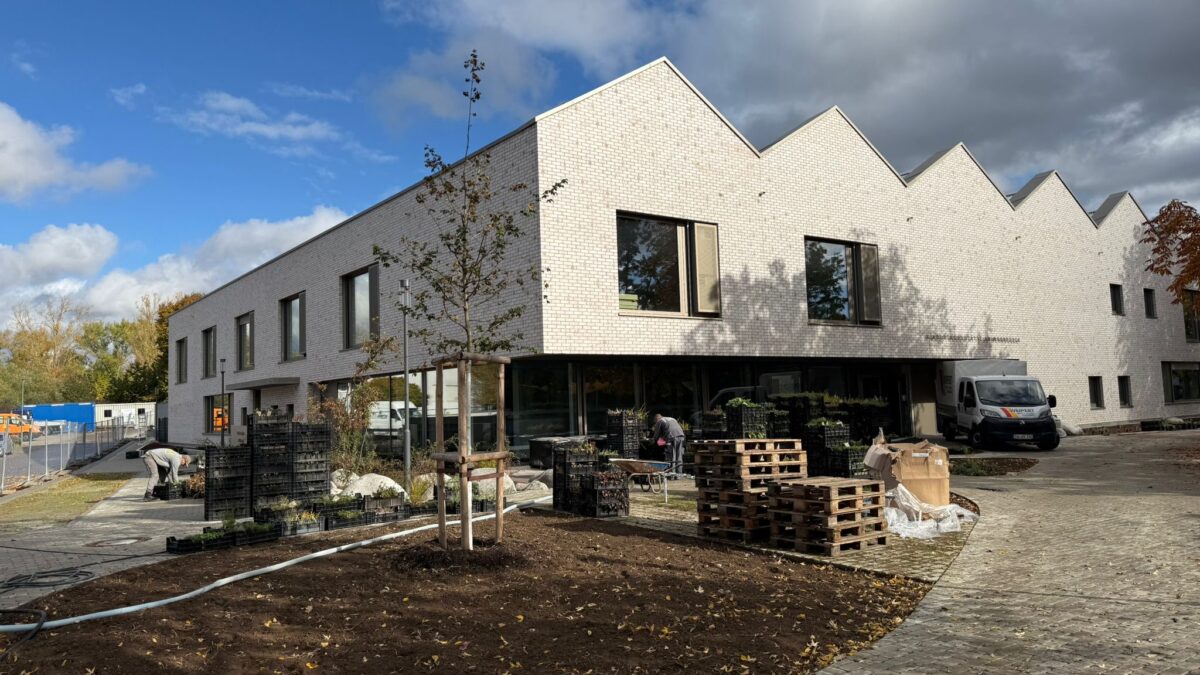 Die Außenanlagen, die Spielgeräte, der Wasserspielplatz und die Bepflanzungen sind nahezu fertig.