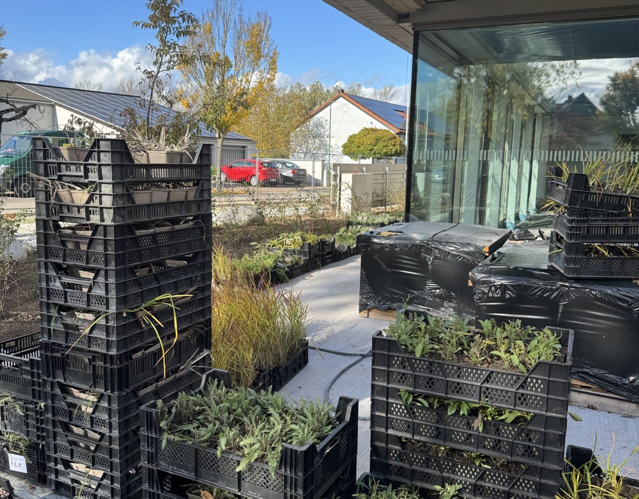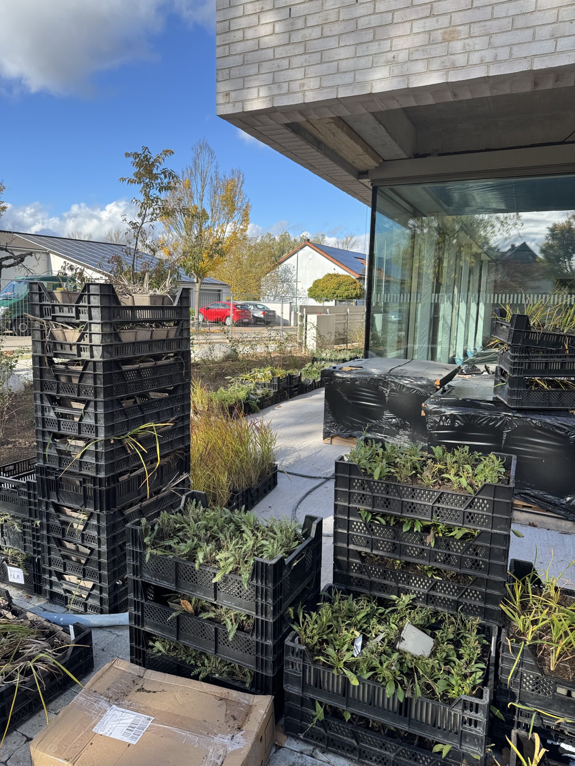 Die Außenanlagen, die Spielgeräte, der Wasserspielplatz und die Bepflanzungen sind nahezu fertig.
